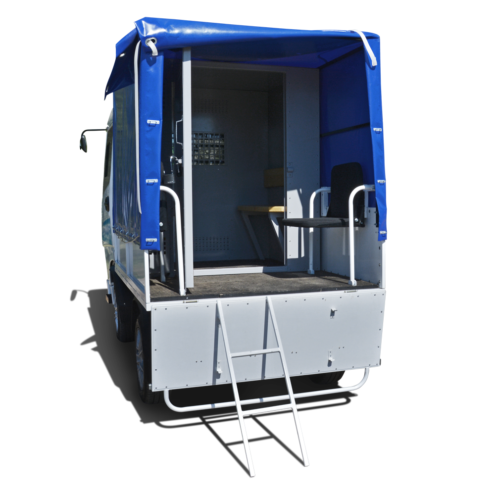 «Муравей» для перевозки сотрудников силовых служб оборудован удобными сиденьями для размещения экипажа в полной экипировке с задней погрузкой-выгрузкой. На заказ возможно исполнение как на обычной, так и на удлиненной платформе (под необходимую вместимость — до 12 человек с водителем). Идеально подходит для патрулирования на узких участках дороги, тротуарах и в лесопарковых зонах. Бесшумный, маневренный помощник на службе защиты общественного порядка.